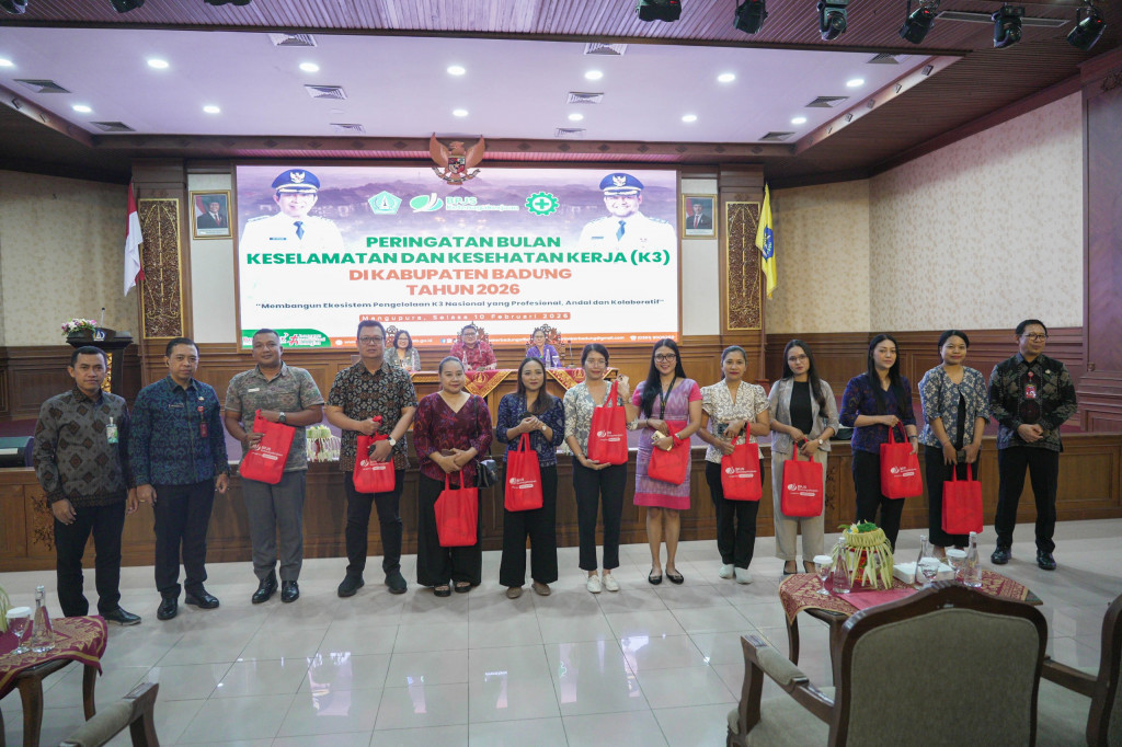 Pemerintah Kabupaten Badung melalui Dinas Perindustrian dan Tenaga Kerja (Disperinaker) memperingati Bulan Keselamatan dan Kesehatan Kerja (K3) Nasional Tahun 2026 di Ruang Kertha Gosana, Puspem Badung, Selasa (10/...